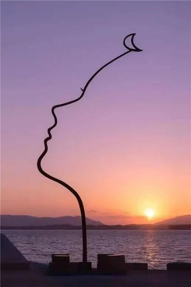 白日里是沉默优雅的艺术装置,等到黎明破晓,太阳从海平面升起的瞬间,光影落在剪影上,氛围感直接拉满✨