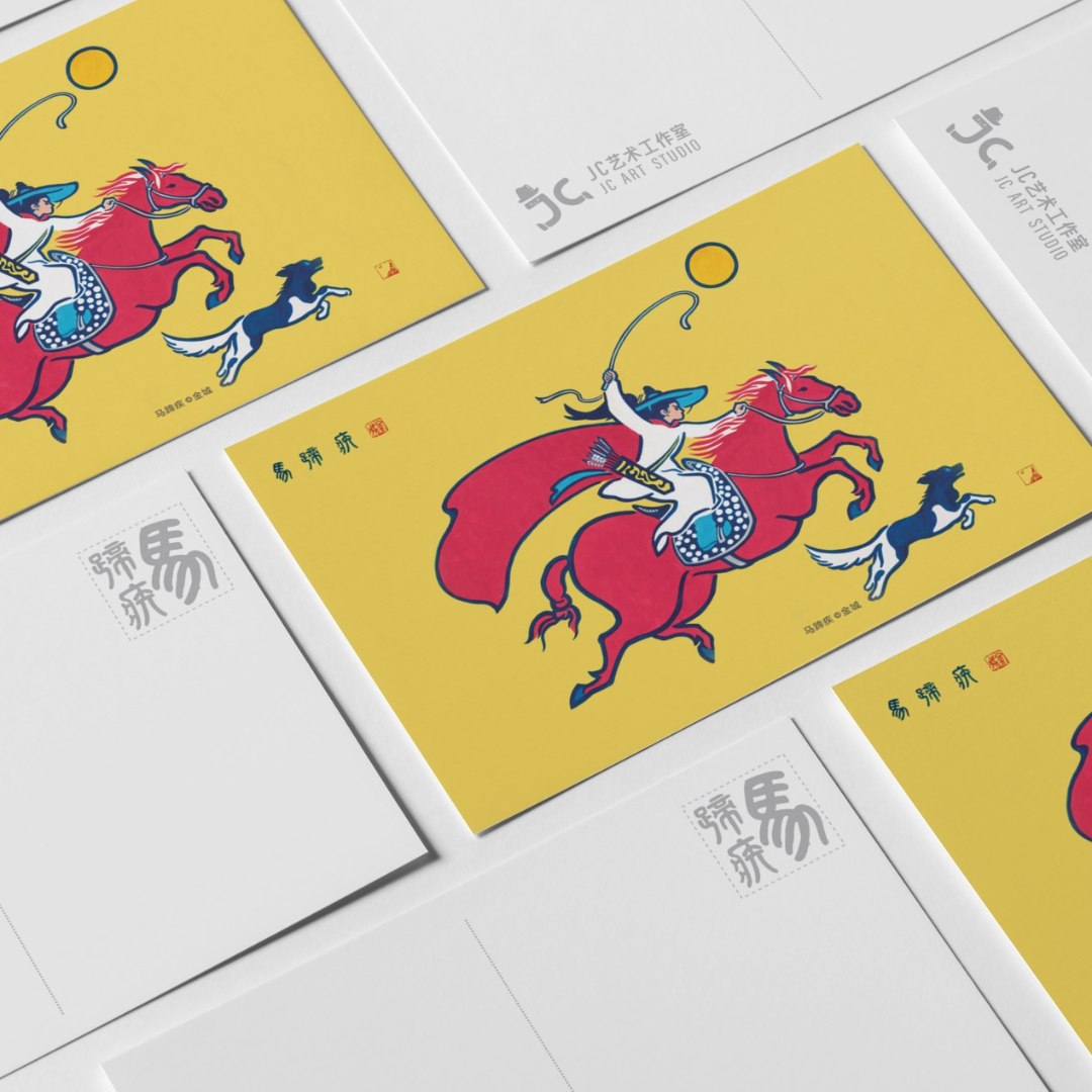 简介:马年系列文创,包含了杜邦纸袋、艺术版画、明星片等品类,通过以骏马奔腾的形象寓意马到成功。
