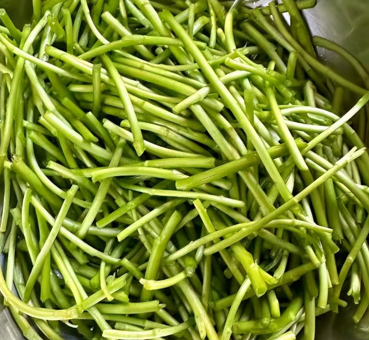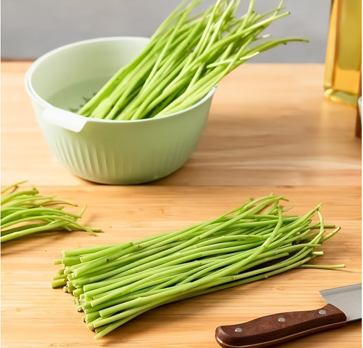 2、藜蒿清洗干净,把老的部分摘掉。