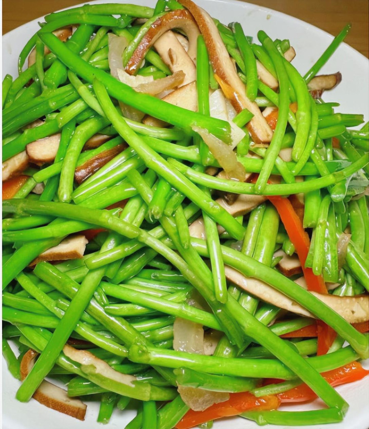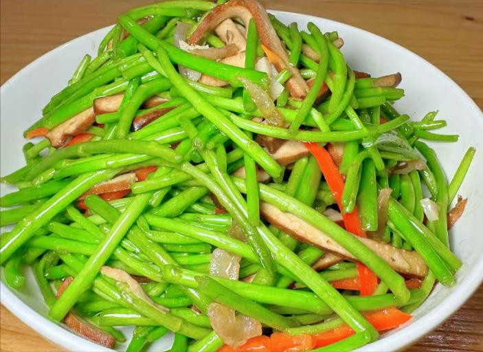 2、搭配猪肝或香干都是非常不错的,藜蒿炒断生就行,不要炒太久会影响口感。