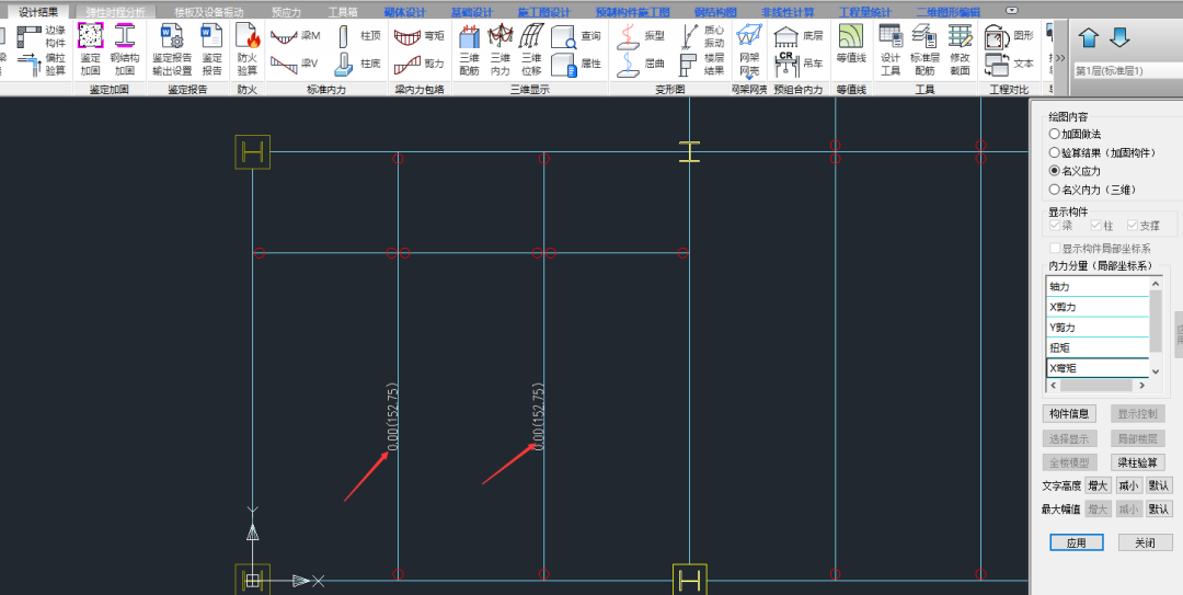打开构件信息,名义应力文本结果同样为0。