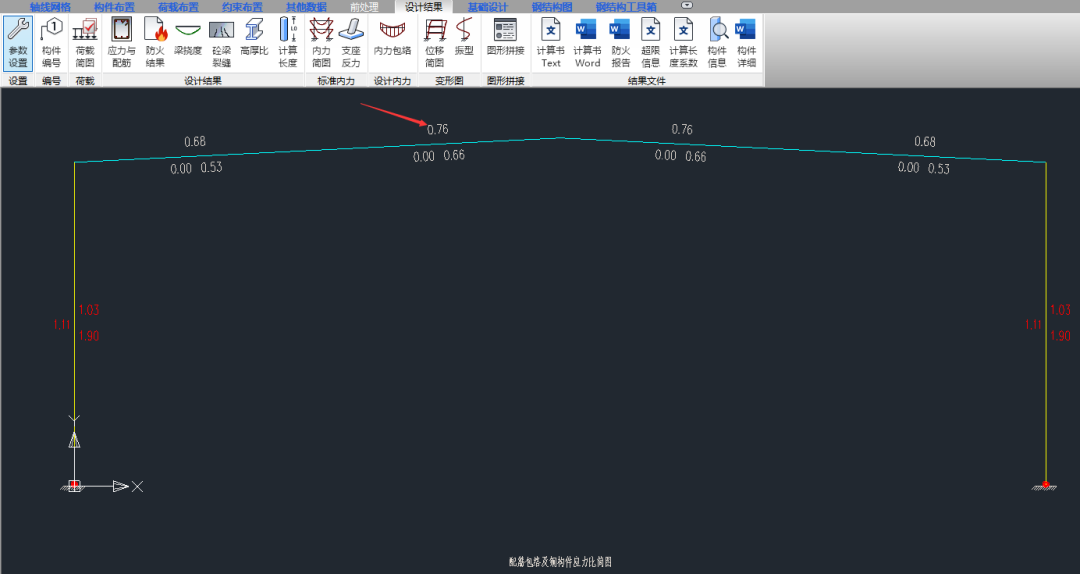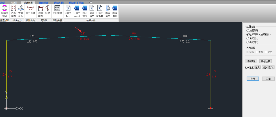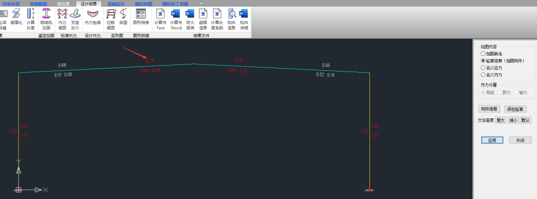 如下图,此门刚梁未布置加固做法的初始应力比为0.76。