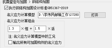 造成名义应力结果为0的主要原因是,加固后构件的截面形心会发生改变,在链接未加固模型读取名义应力时,节点坐标的精度超过了软件的默认值。此时,就无法读取到未加固模型的名义应力,最终输出为0。