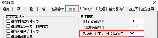 遇到这种情况,可以在计算参数的高级选项中,将“包络设计时节点坐标判断精度”改大,如将默认值100改成500,重新进行加固计算。